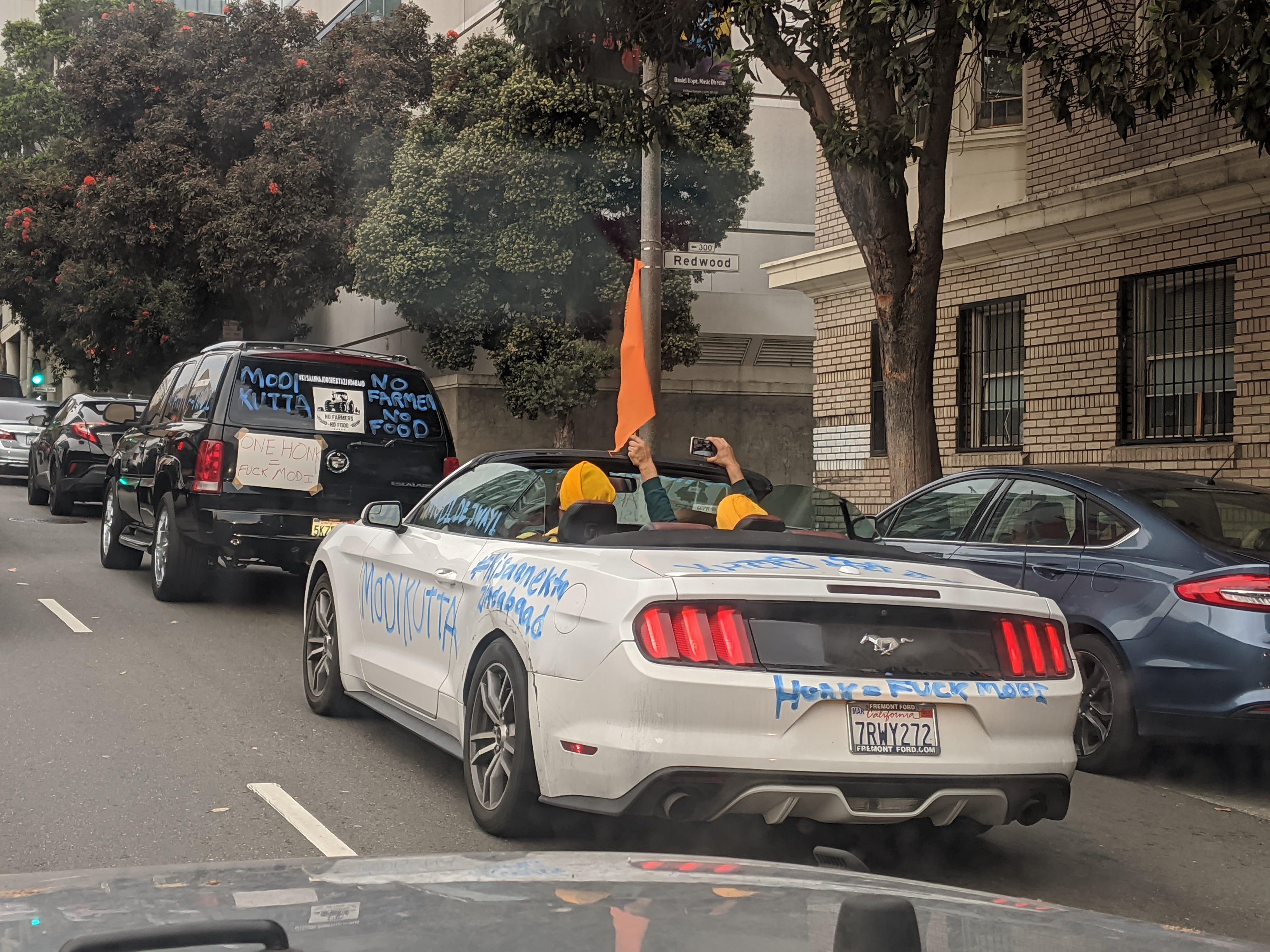 Also recently, also randomly, I was again reminded of the odd choice the unapologetic American minority faces in America. Driving north on Franklin Street in San Francisco, I suddenly found myself in a noisy caravan protest. Squinting at the lettering, it seemed to involve farming and Indian PM Nahendra Modi. I tweeted about it and Indians chimed in to try and explain, some complaining the protest shut down traffic on the Bay Bridge. I still don’t totally understand the actual issue, but the reflex is intensely familiar: Cubans in Miami would shut down bridges and highways over some burning exile issue as well. To me, it’s the most American thing ever, and the fact a big honking Escalade and Mustang were festooned with phrases that 99% of Americans couldn’t understand makes it even better. Here is a community fully living both their American and non-American identities, with little concern for what the reigning elites consider proper Greek behavior (not that they’d be able to understand any of this anyhow, as I couldn’t). This is real cosmopolitanism, not the fake Whole Foods kind that sees everyone as a character in some ethnic morality play performed in endless loop, with secular Anglo whites (imagine that) as the central reference point against which every group is defined.