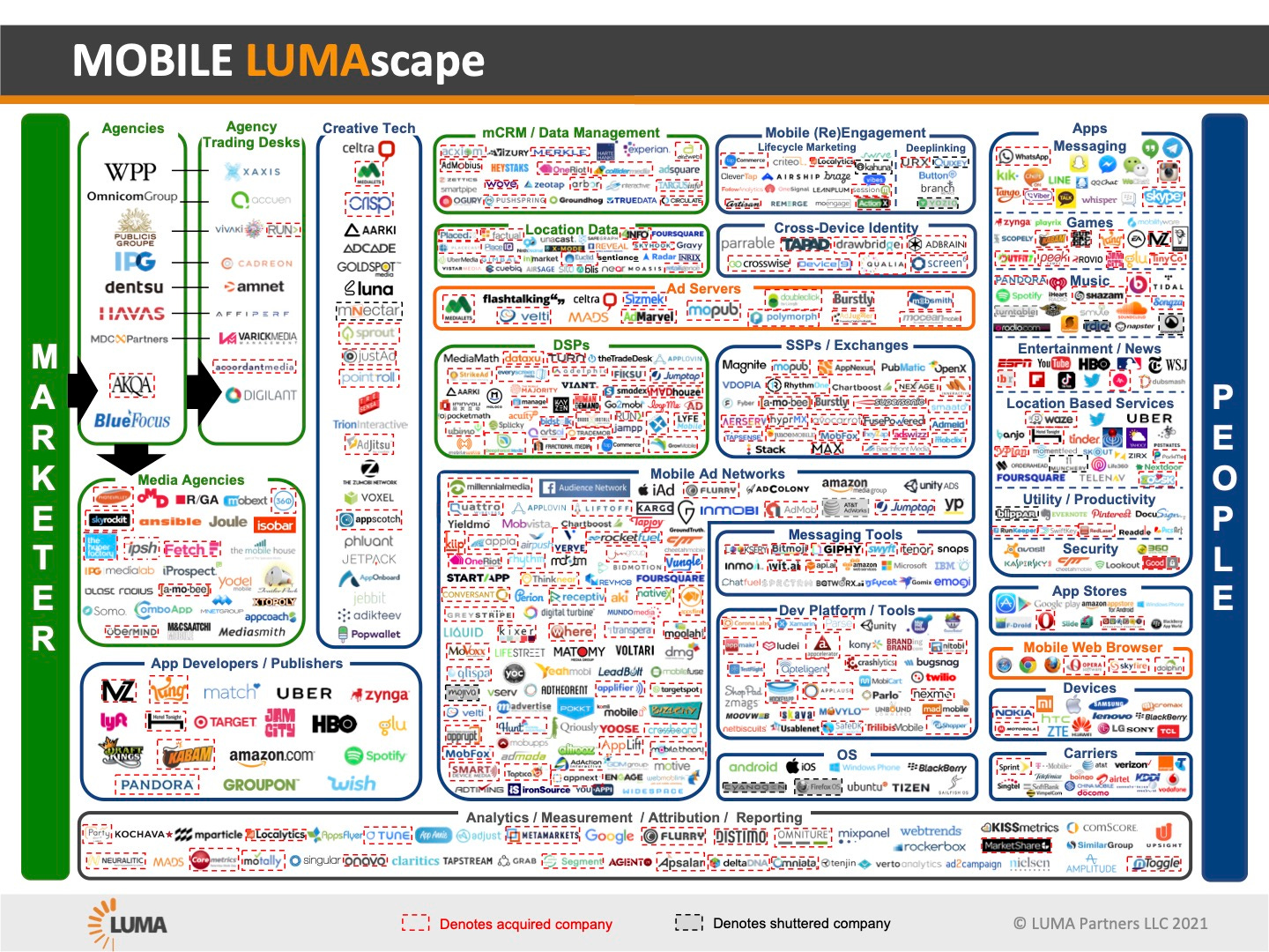 As with most problems in tech, the issues are really human ones: the entire business would have to be refactored along with the engineering. The only companies who can drive this foundational change are the two companies who control the smartphone operating systems themselves. Everyone else in that logo landscape, to a greater or lesser degree, plays a reduced role in the drama; some may no longer even have a role.
