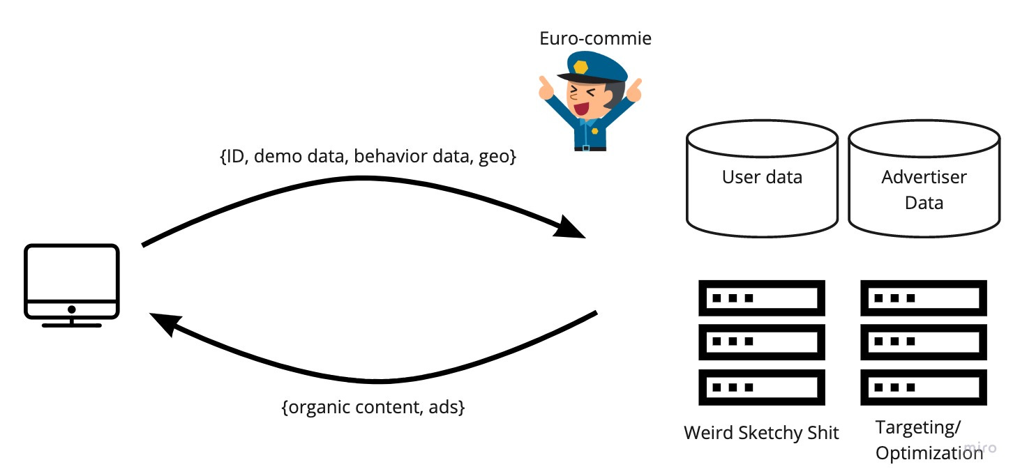 From the hard-nosed viewpoint of the marketer, all this endless privacy drama is some Euro-commie bullshit around that one column in the database table with a name like ‘aaid’ or ‘idfa’, whose other columns contain everything you do online. That special column that gets deleted (logically if not literally) when you finally hit that ‘opt out’ button that nags us all to death thanks to the “we can’t innovate, so we’ll regulate” European Union.